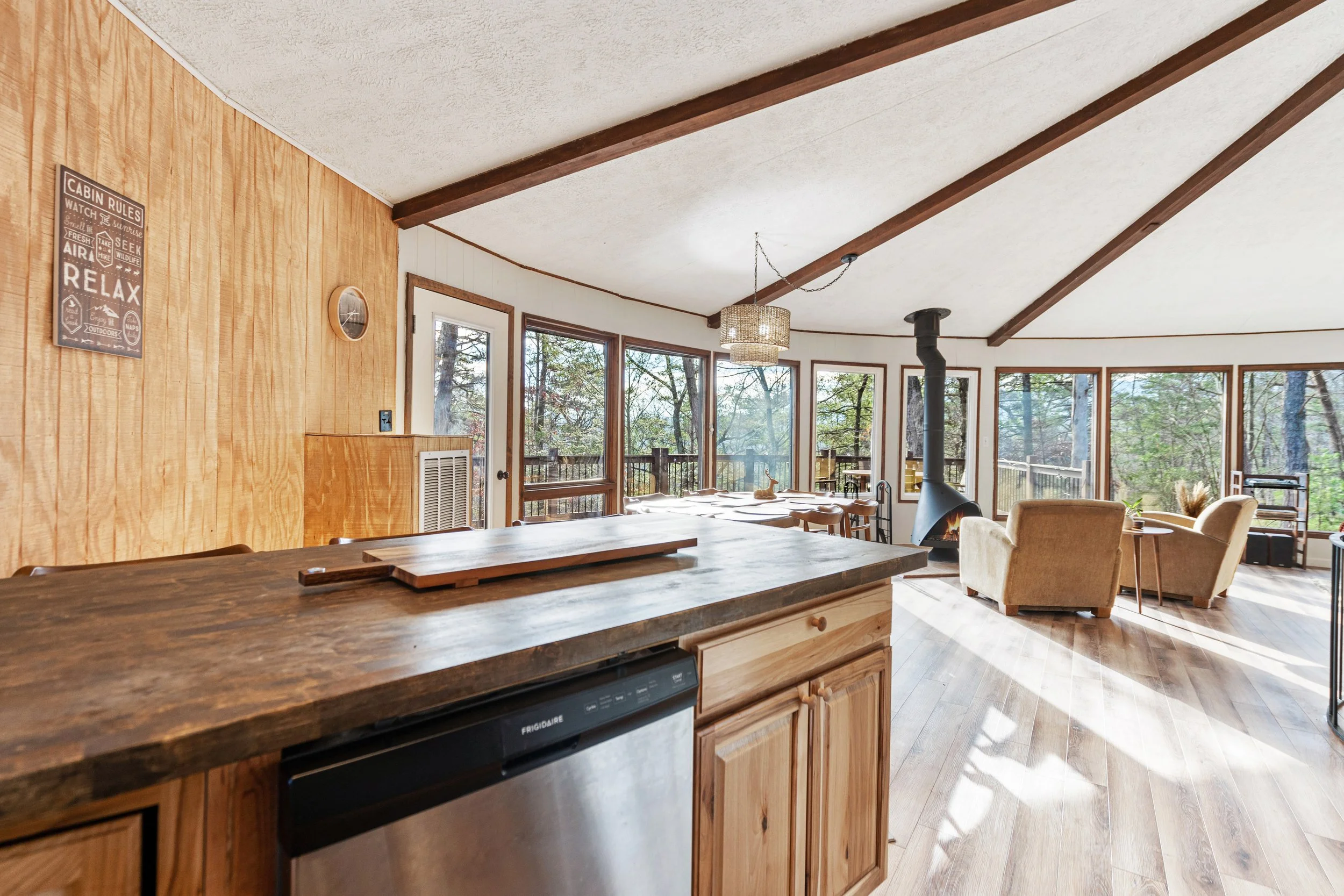 Be prepared to take advantage of outside time on our spacious decks on either level with plenty of deck furniture. You will find a charcoal grill and an outdoor fire pit right by the cabin for roasting marshmallows and cozying up in blankets.